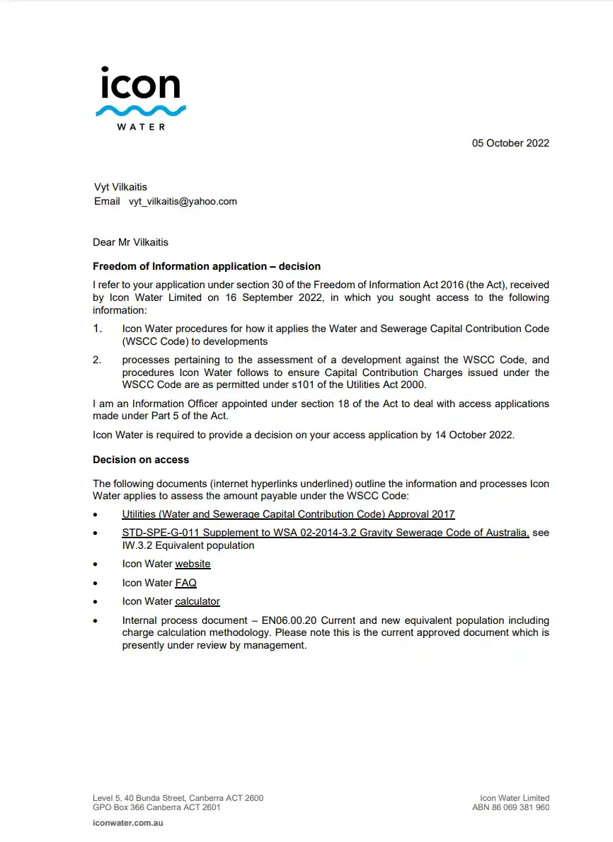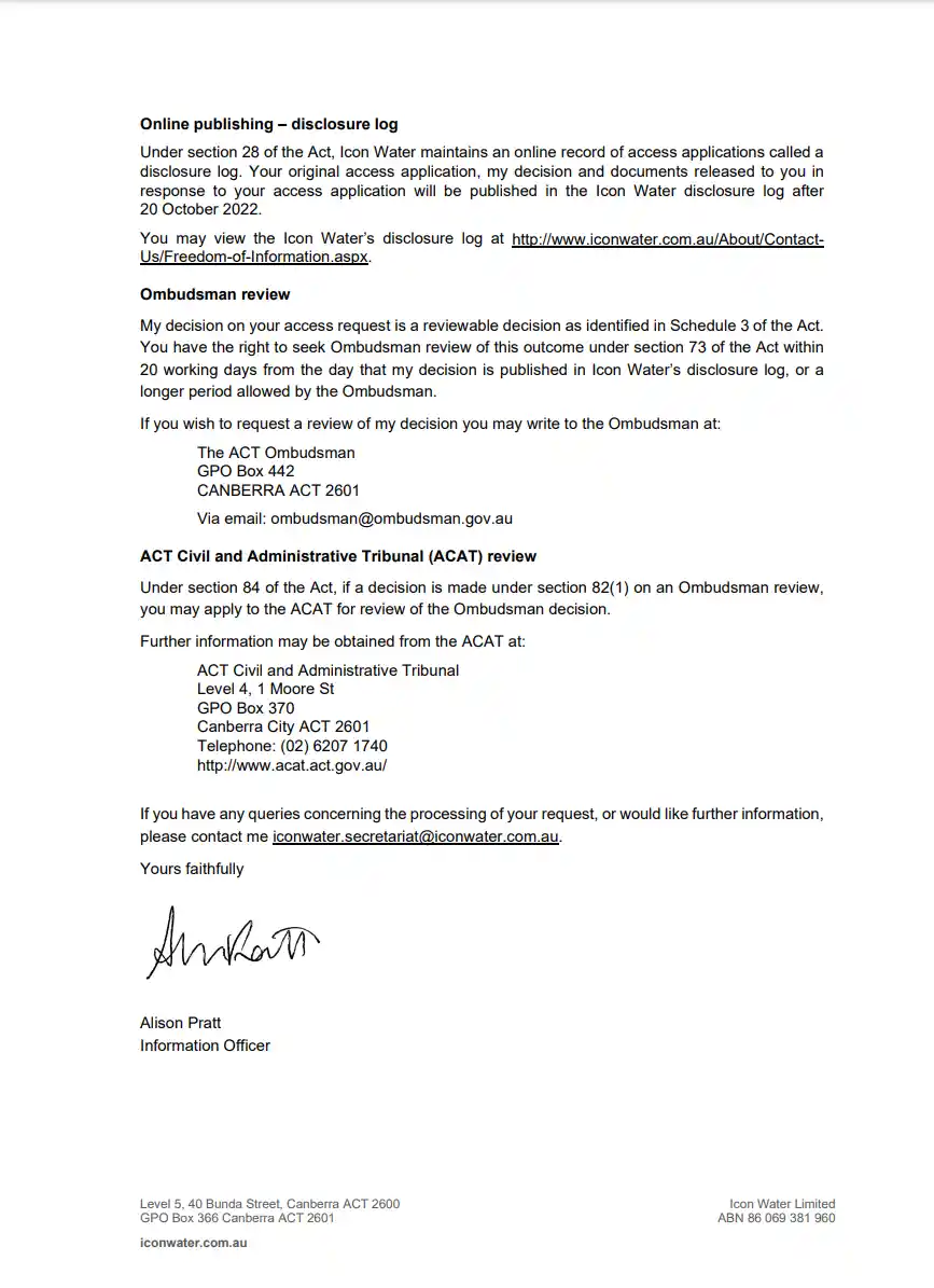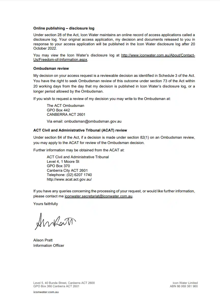 Icon Water: Freedom of Information Determinations