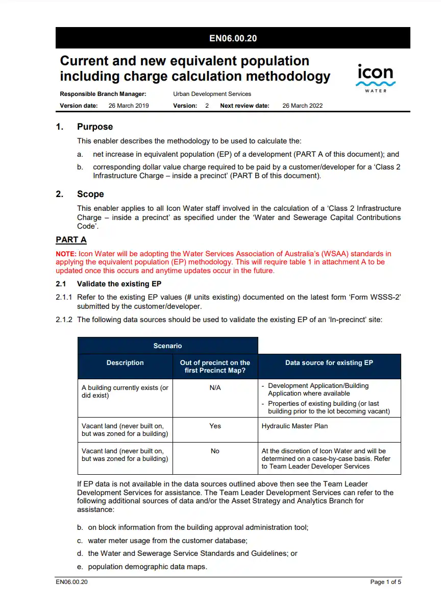 Icon Water has recently published some new guidance on its website related to the calculation of the ‘net increase in EP’ (Equivalent Population) under the Water and Sewerage Capital Contribution Code (Code) for developments on single residential blocks. The new guidance that was implemented as of 1 July 2023 provides definition for what constitutes a net increase in EP.